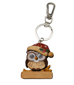 Holz-Schlüsselanhänger „Weihnachtseule“ – ca. 6 cm