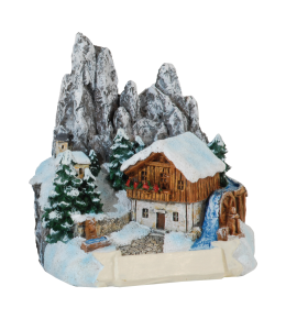 Souvenir Alpen Bauernhof Winter & Schleife 8 cm