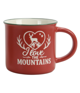 Tazza caffé rosso 9 cm con rilievo "I Love the Mountains"