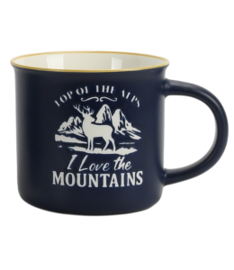 Tazza caffé blu 9 cm con rilievo "I Love the Mountains"
